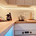 - ❓Existe uma cozinha disponível em apartamento à beira-mar para uso dos hóspedes?Sim, apartamento à beira-mar está equipado com cozinha equipada e oferece chaleira elétrica, máquina de café/chá e utensílios de cozinha.